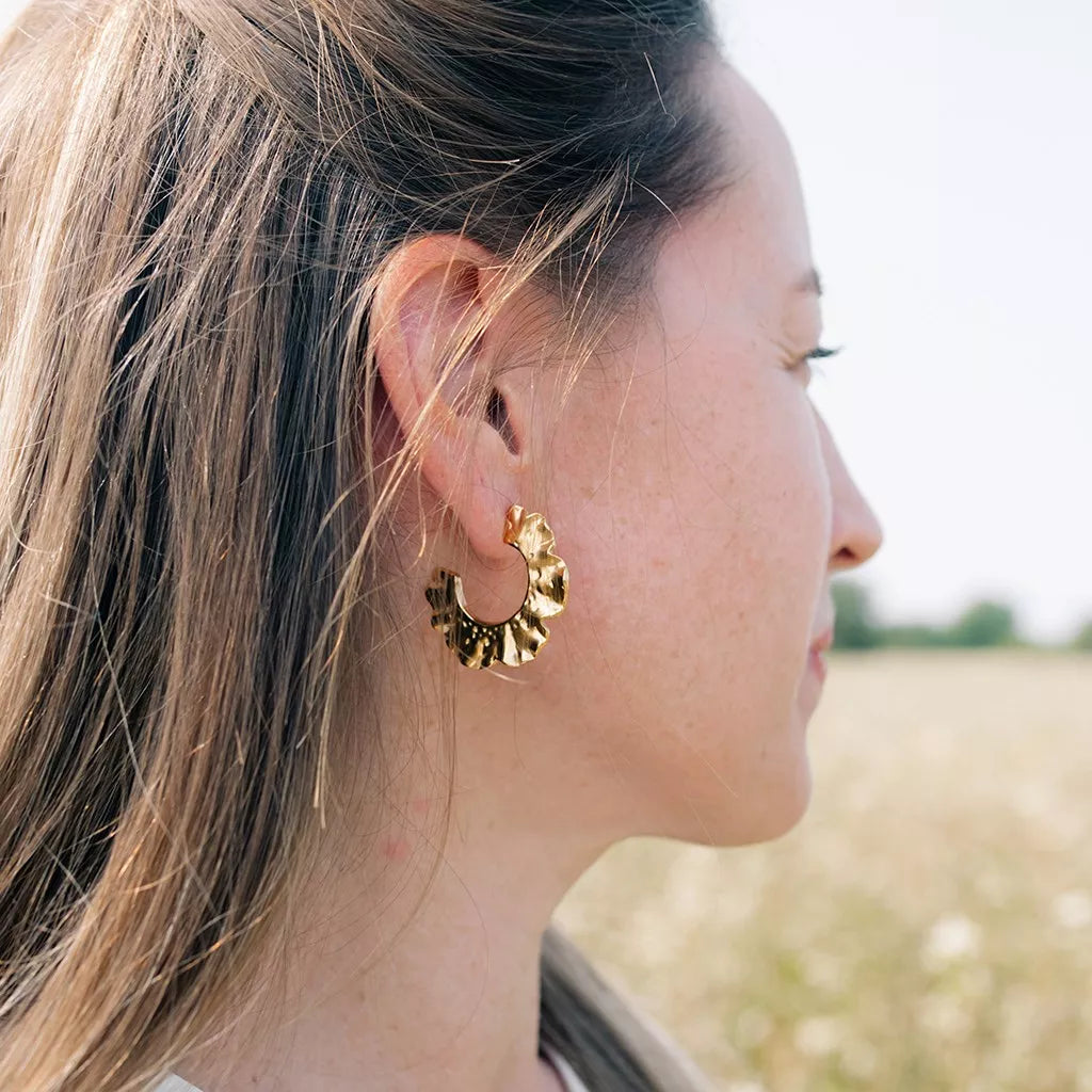 Grosses créoles argentées ondulées intemporelles IHANA - acier inoxydable (paire de 2)